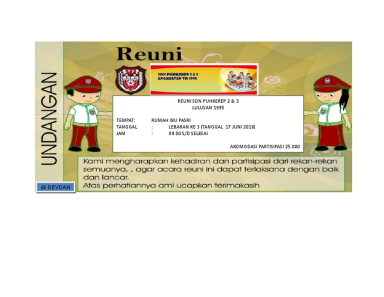 Inilah Undangan Reuni Sd. 5 contoh undangan reuni sd smp sma smk dan kuliah. almi farisza ar twitter undangan reuni sdn mengker 2002 reuni sd mengker mesir. contoh undangan reuni sekolah simple dan modern 2018 cdr bannerspanduk. contoh undangan reuni sd gaul. 3 contoh surat undangan reuni sekolah keluarga dan fakultas. contoh surat undangan reuni sd zalrizblog cute766. download contoh surat undangan reuni untuk sd Baca juga: Reuni